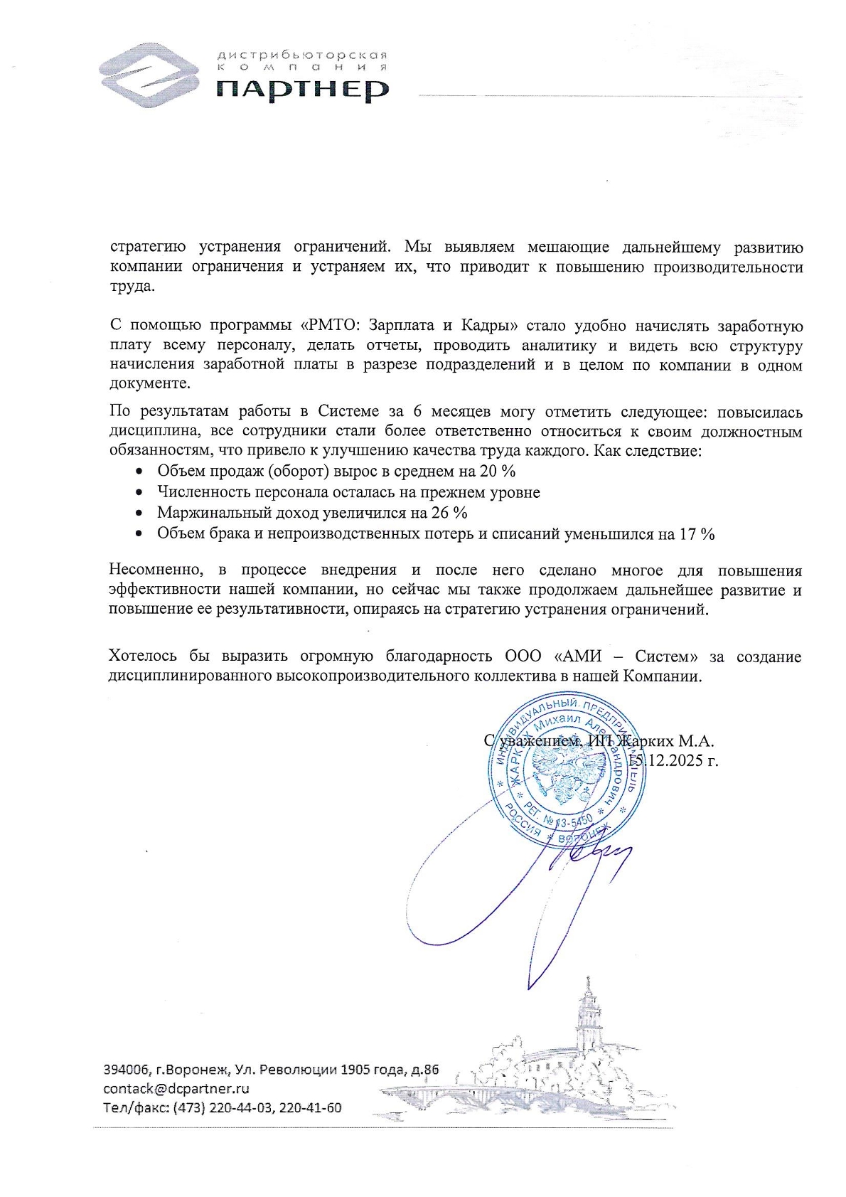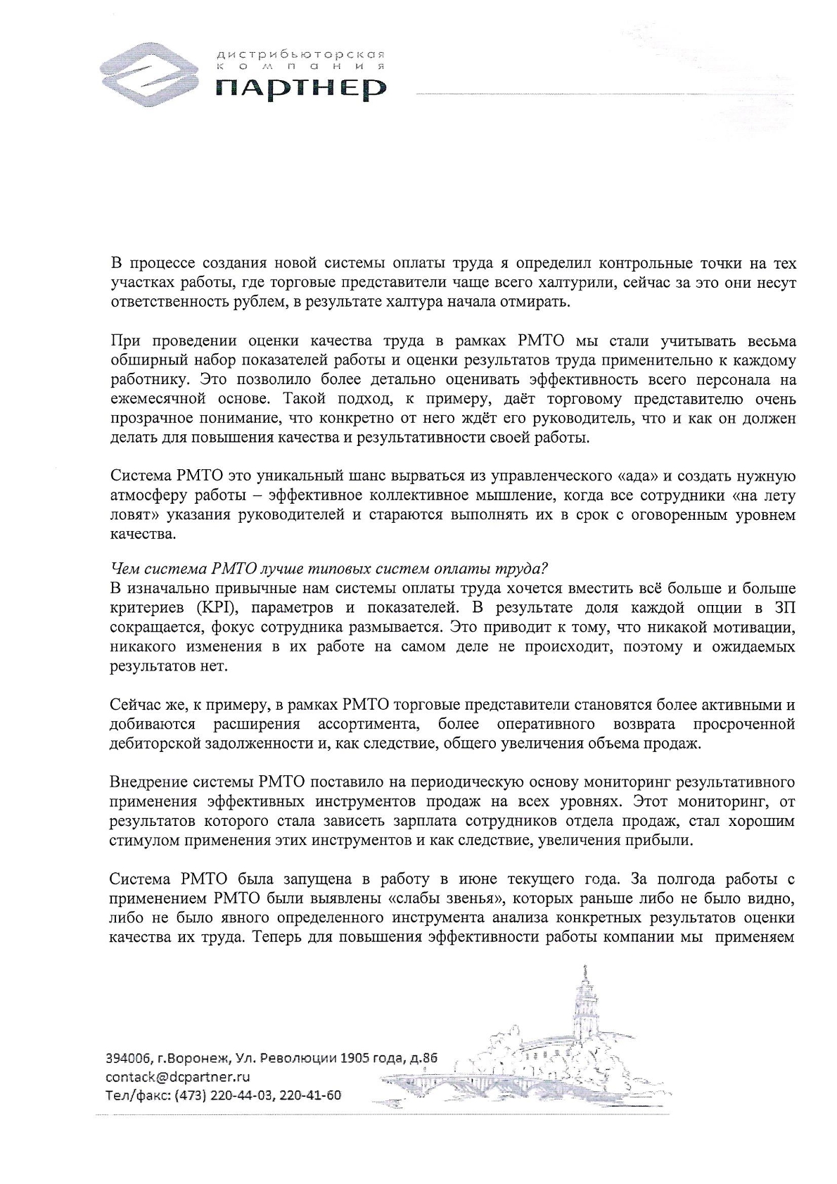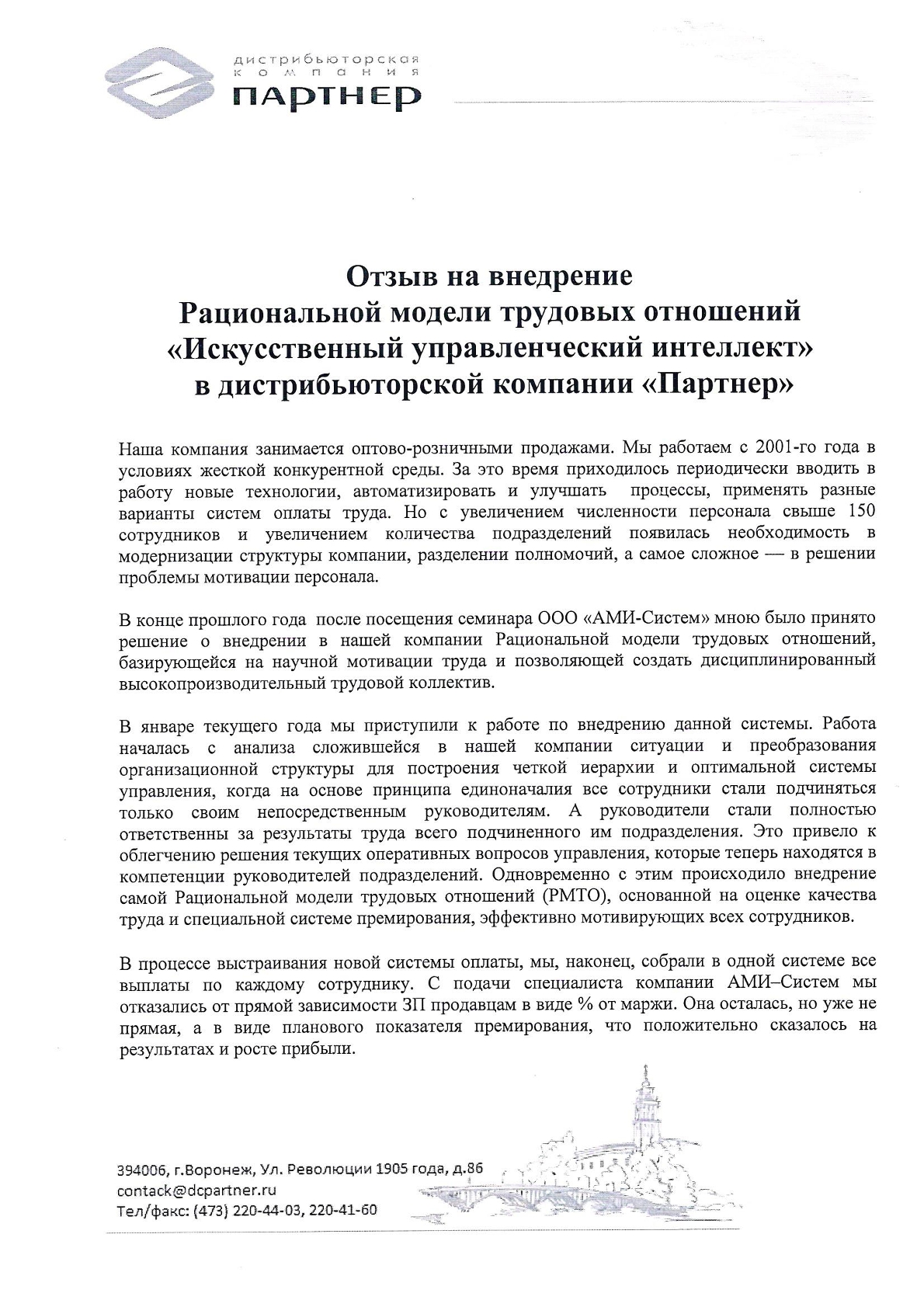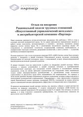 Отзыв директора ДК «Партнер» Жарких М.А. о внедрении Рациональной модели трудовых отношений