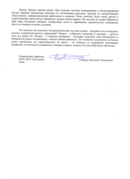 «Важно то, что сегодня существует работающая организационная структура, разработаны системы планирования и бюджетирования, коллектив вовлечен в решение вопросов по достижению интересов предприятия и его развитию...»