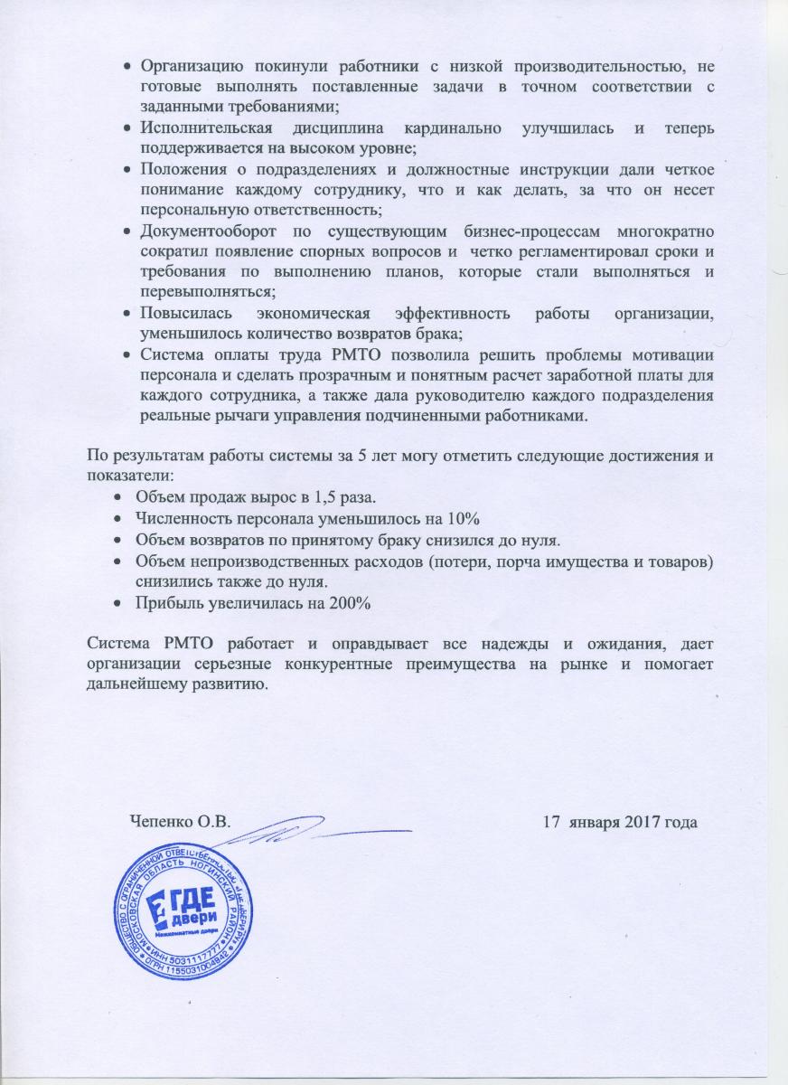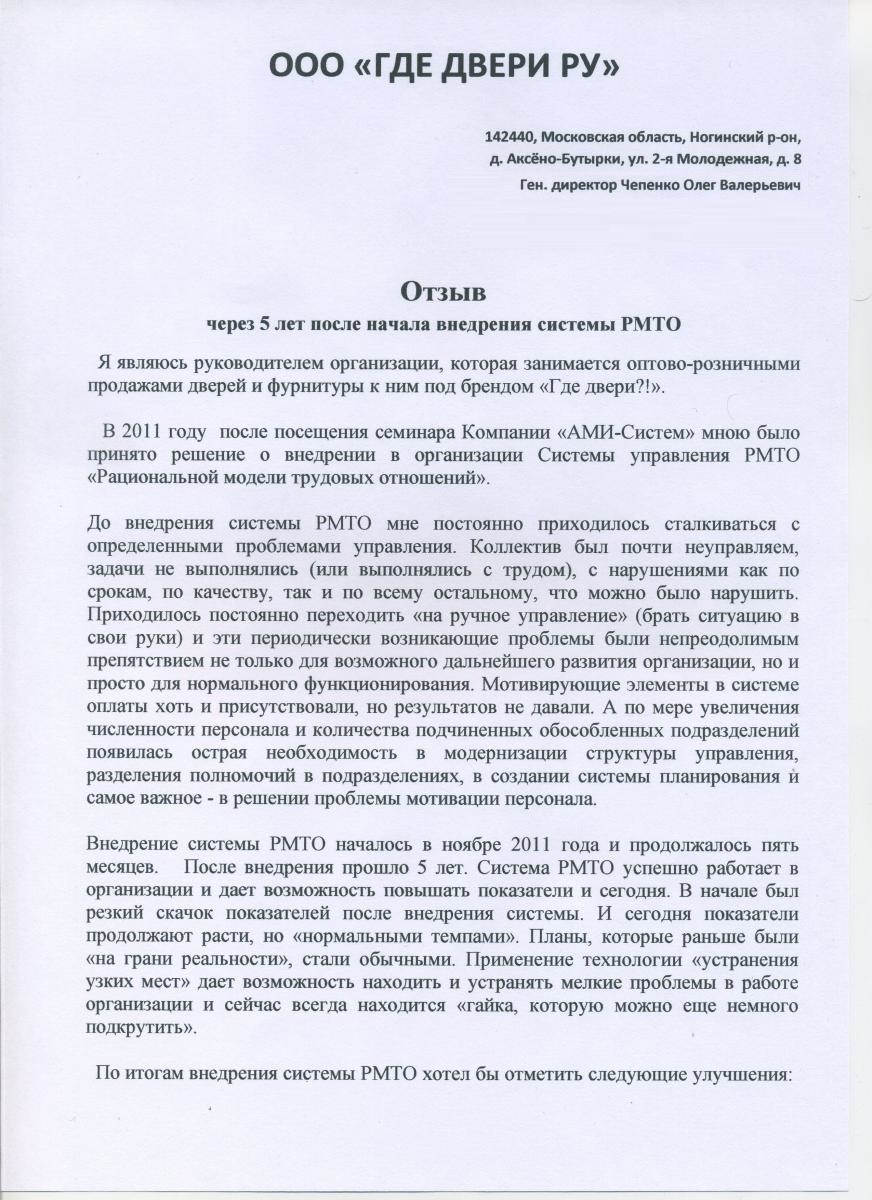 Отзыв генерального директора ООО "Где двери ру" Чепенко О.В.