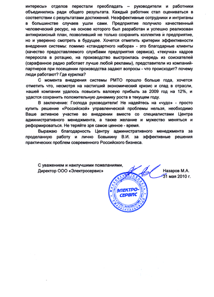 Отзыв директора ООО «Электросервис» Назарова М.А.