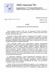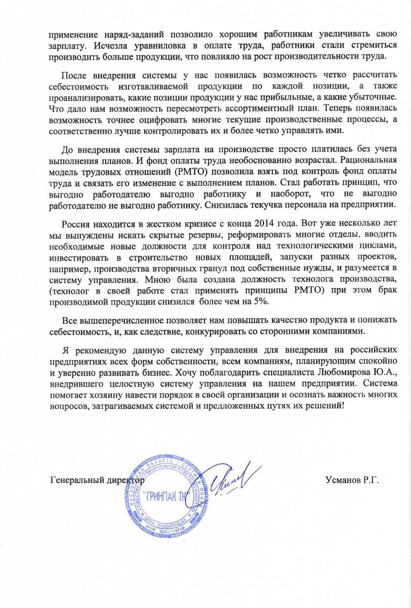Отзыв Генерального директора ООО «Гринпак ТК» Усманова Р. Г. о внедрении Целостной системы управления